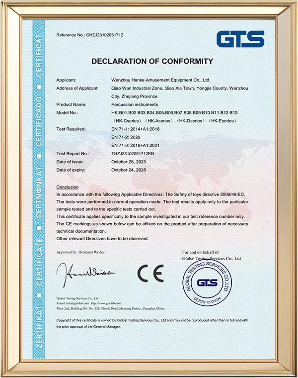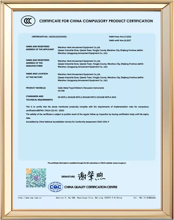 1हम आउटडोर पर्कशन उपकरण निर्माण के क्षेत्र में उन्नत अनुसंधान कर रहे हैं। सेवा की गुणवत्ता और स्तर में सुधार के लिए, हमारे कर्मियों ने गुणवत्ता नियंत्रण प्रशिक्षण पूरा कर लिया है और एक समर्पित निरीक्षण विभाग की स्थापना की है।