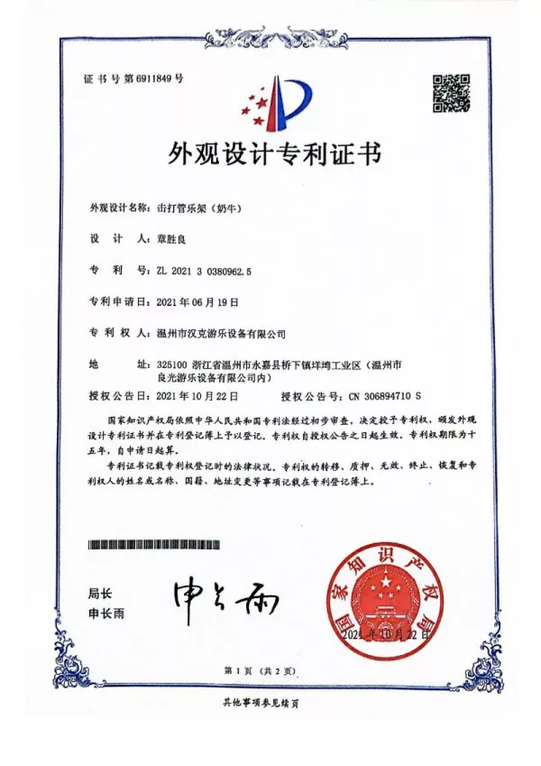 गाय के आकार के पर्कशन का आकार 155 * 33 * 150 है, जो मिश्र धातु एल्यूमीनियम + ग्लास फाइबर प्रबलित प्लास्टिक + गैल्वेनाइज्ड पाइप से बना है। अपने अद्वितीय स्वर और सुंदर उपस्थिति के कारण, कई बच्चे उससे मोहित हो जाते हैं।