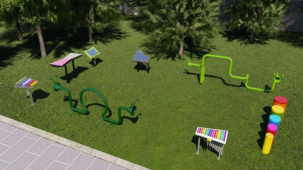 मेलोडी आउटडोर म्यूजिकल पार्क इंस्ट्रूमेंट एक कॉम्पैक्ट और सुरुचिपूर्ण आउटडोर मेटल फोन है जो श्रोताओं को अपने उज्ज्वल और लंबे समय तक चलने वाले टोन के साथ आकर्षित करता है। इसमें नौ एनोडाइज्ड एल्यूमीनियम नोट हैं, जो सी मेजर में पेंटाटोनिक पैमाने पर ट्यून किया गया है, जो मध्य-रेंज/सोप्रानो रेंज में एक सुखद झिलमिलाती ध्वनि का उत्सर्जन करता है। इसके टिकाऊ फ्रेम और रेज़ोनेटर लंबे जीवन और स्थायित्व को सुनिश्चित करते हुए, मजबूत उच्च गुणवत्ता वाले जस्ती पाइप से बने होते हैं।